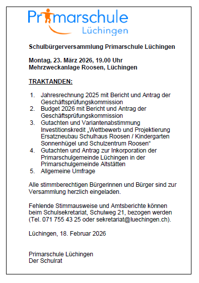 Einladung Informationsanlass Strategie Schulraumentwicklung