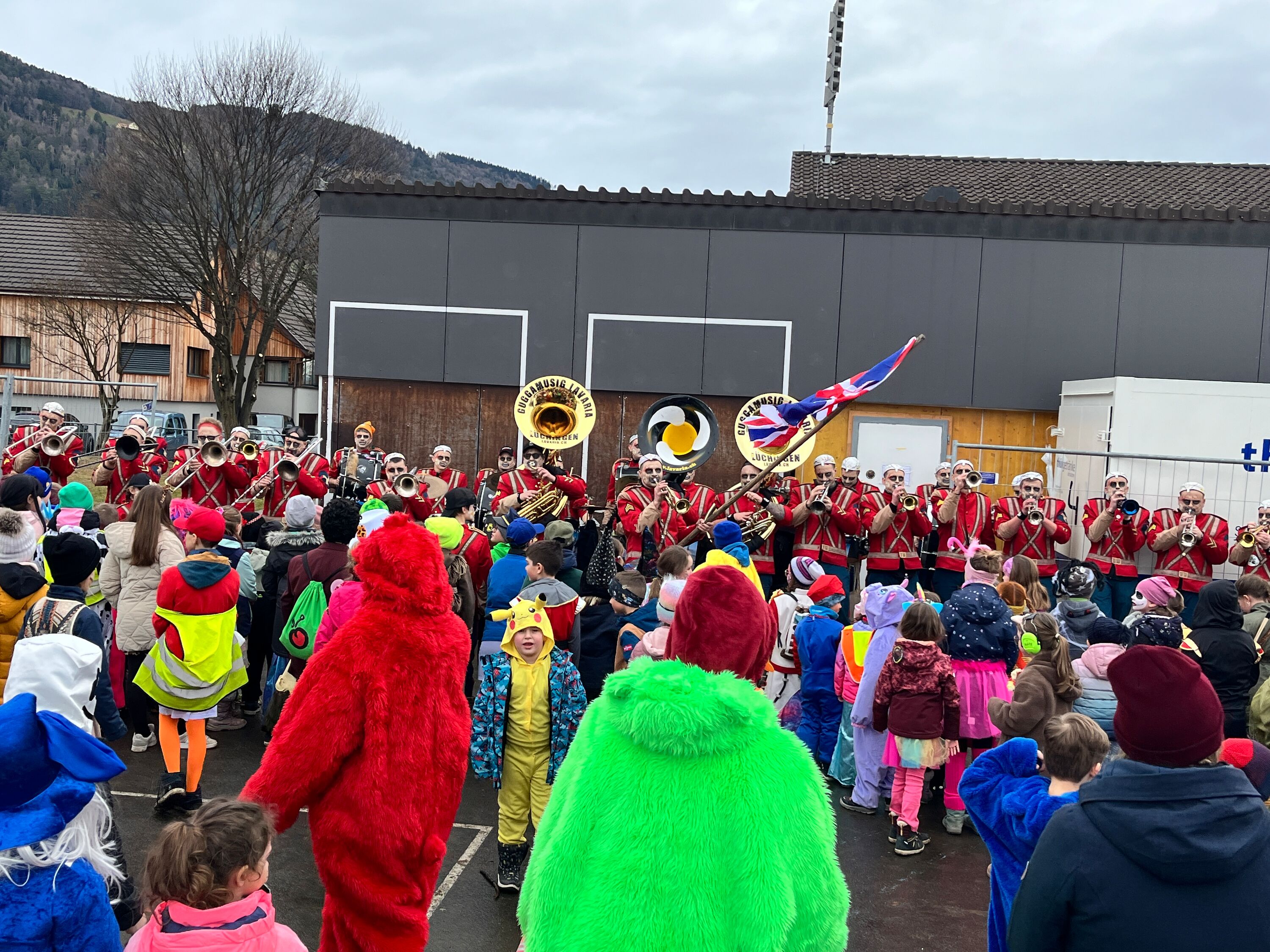 Am Schmutzigen Donnerstag feierten wir traditionsgemäss im Roosen Fasnacht. Viele unterschiedliche „Fasnachtsbutzen“ amüsierten sich an verschiedenen Posten. Der Höhepunkte des Morgens war das Konzert der Lüchinger Guggenmusik „Lavaria“. Es wurde gesungen, getanzt und Polonaise gemacht.