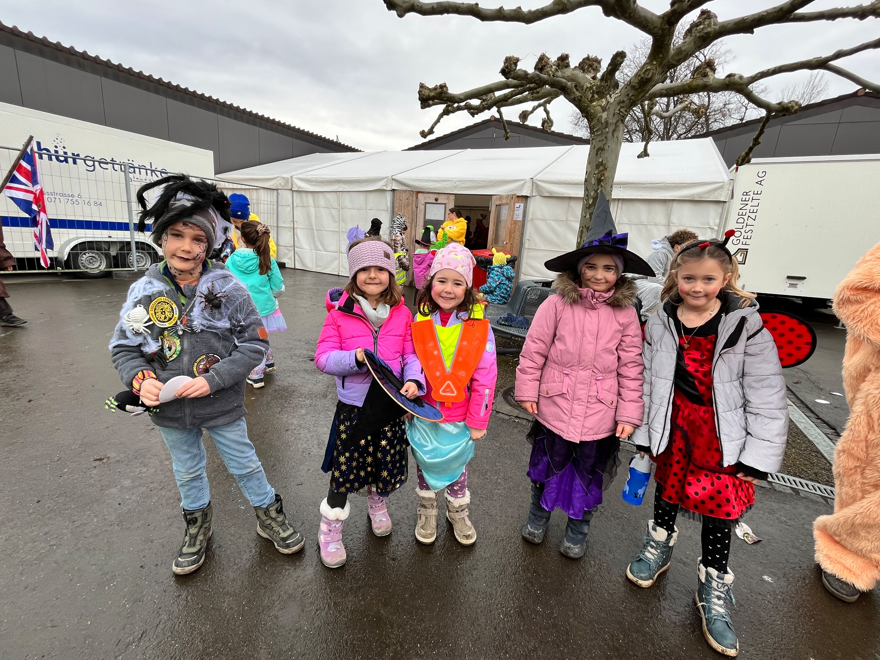 „Wenn’s Guuggemusigg git, den singed d’Lüüt: «S’isch Fasnachtsziit!» Und aalli gross und klii, die wönd debii, verkleidet siii!