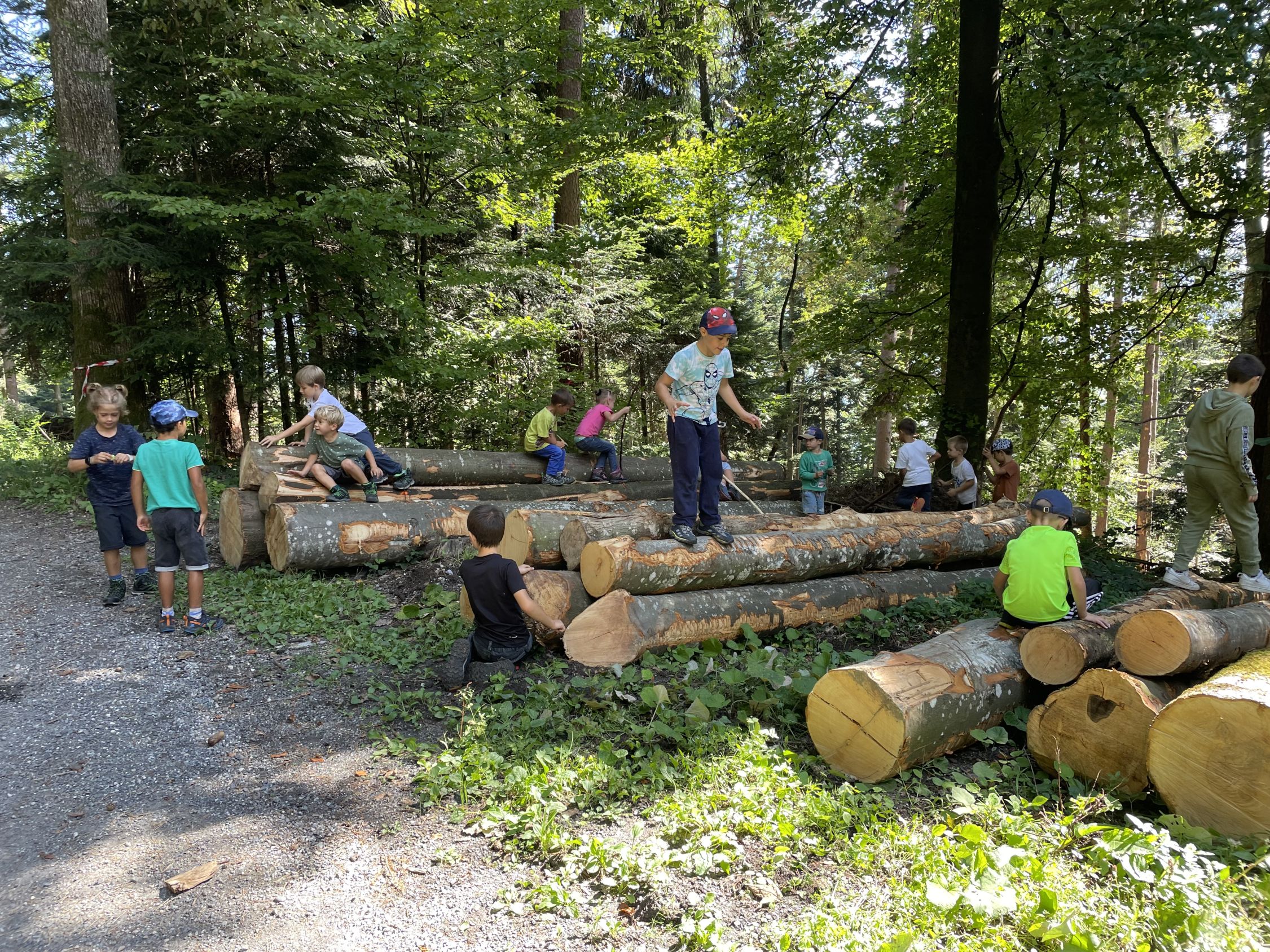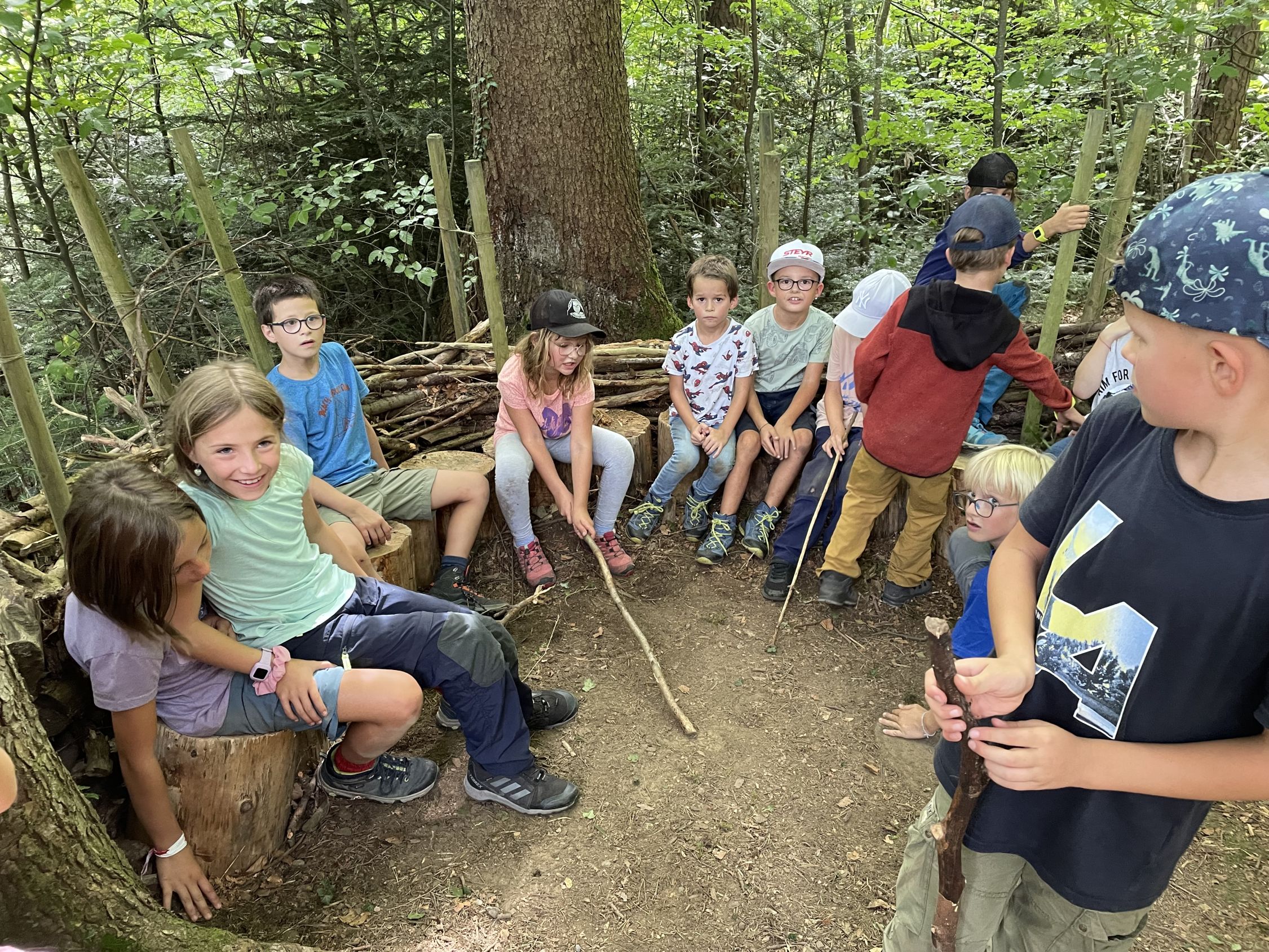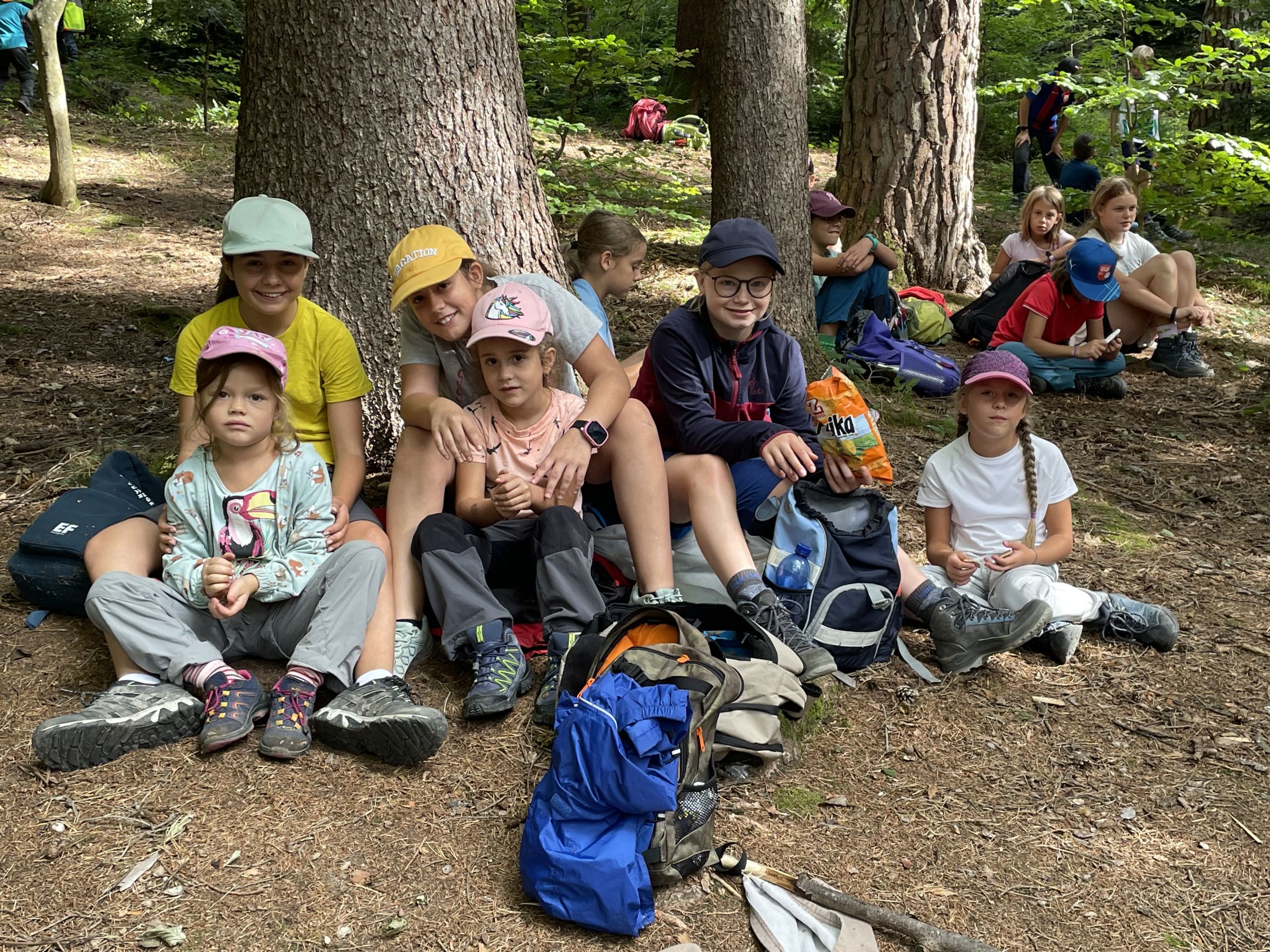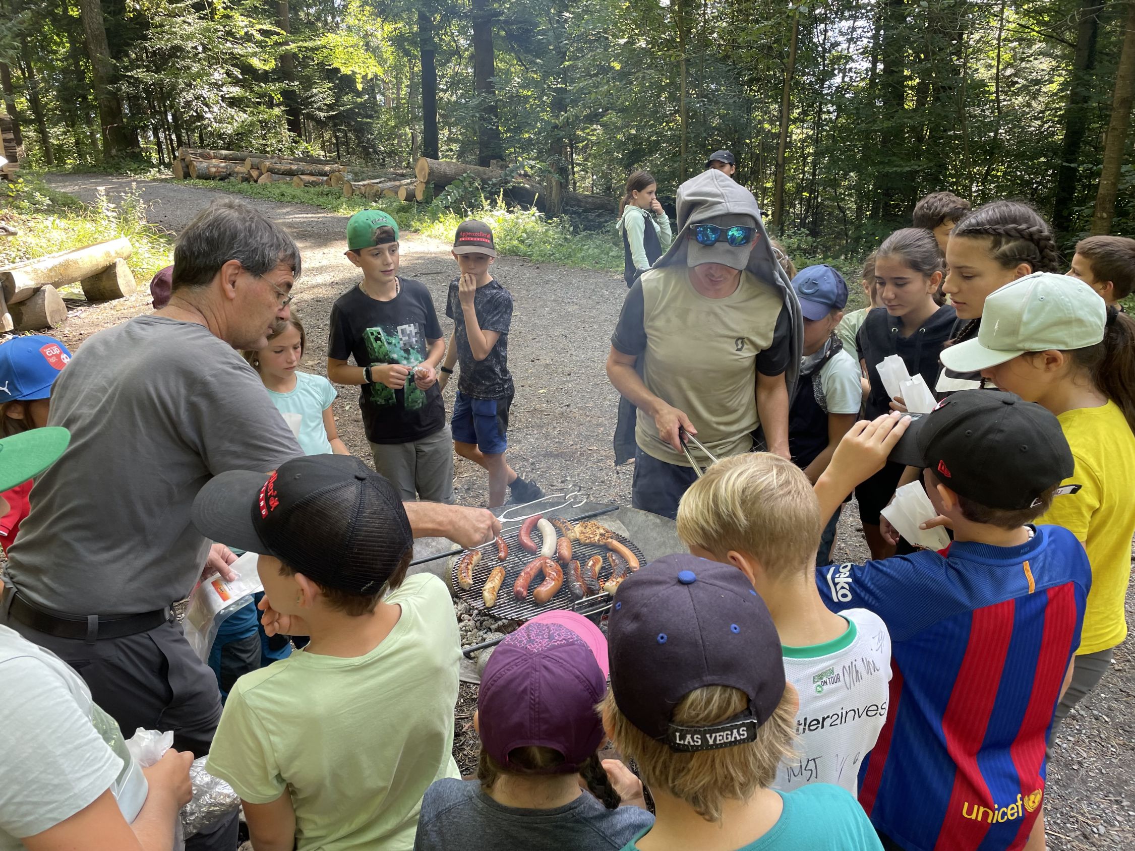 Die Wettervorhersage war gut und unsere traditionelle Herbstwanderung konnte am Donnerstag, 21. September 2023 durchgeführt werden. Bei perfektem Wanderwetter trafen sich die Schüler*innen der 2. - 6. Klasse morgens beim Schulhaus Kirchfeld. Von dort aus ging es in einem überraschend schnellen Tempo über Waldpark-Burgfeld-Steigershäuser-Boden-Morgarot bis zur Marper Hütte. Bereits um 10.30 Uhr trafen die Kinder bei den vorbereiteten Feuerstellen ein.