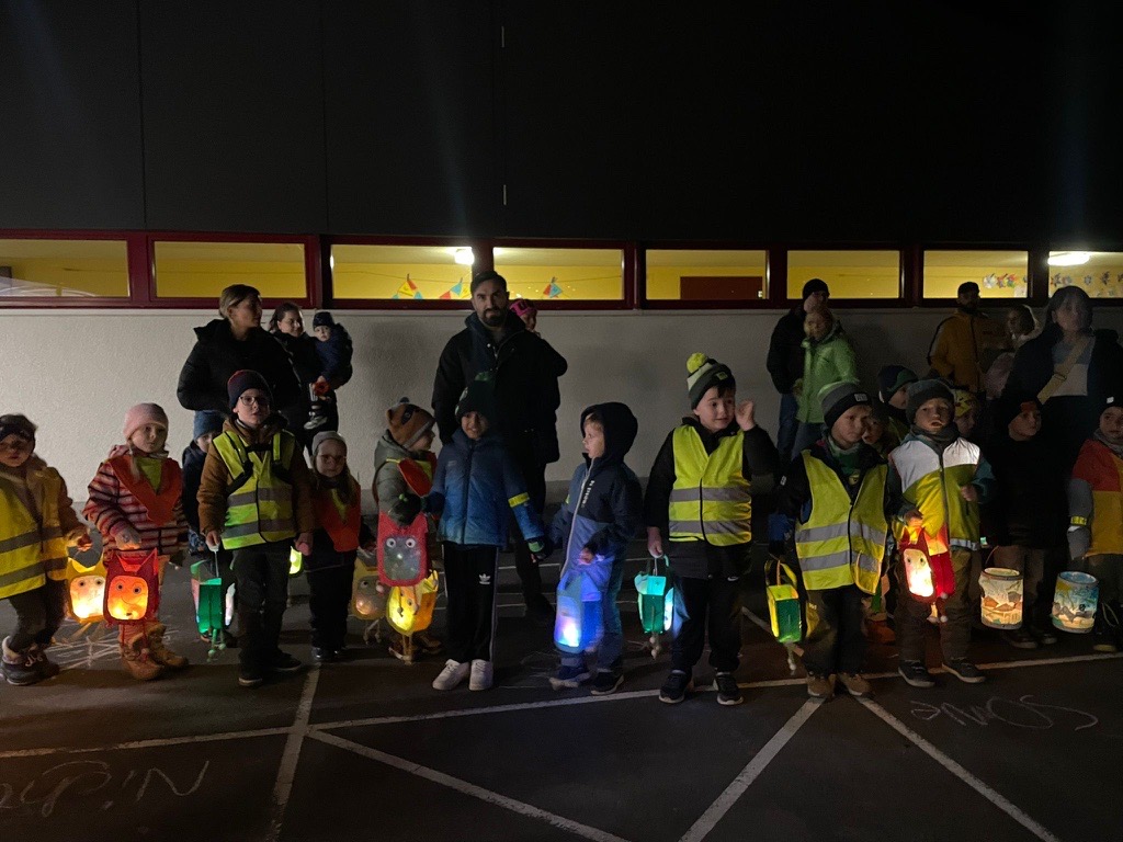 Alljährlich Anfang November treffen sich die Kinder vom Kindergarten und die vom Schulhaus Roosen zum stimmungsvollen Laternenumzug vor dem Kindergarten. Nach einer herzlichen Begrüssung und einigen wichtigen Hinweisen, die unsere Schulleiterin an alle Besucherinnen und Besucher richtet, erklingt bereits das erst Lied der Kinder.