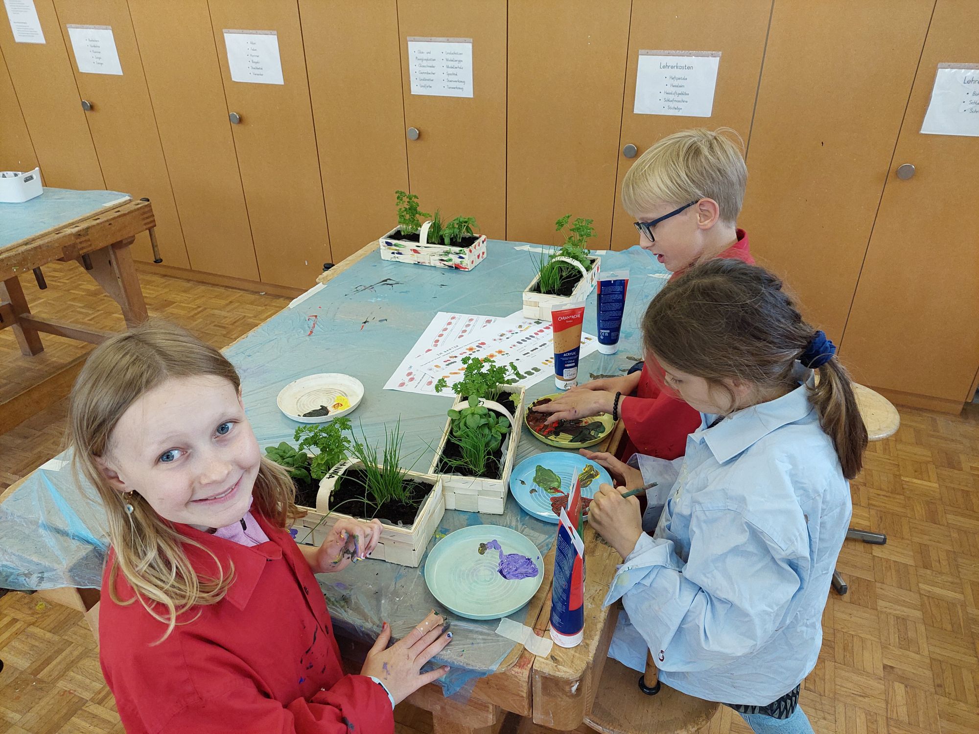 An den zwei Nachmittagen konnte aus verschiedenen Angeboten ausgewählt werden. In altersdurchmischten Gruppen wurde die Feuerwehr besucht, im Schulgarten gewerkelt, in der Schulküche gebacken und gekocht, ein Kräutergärtli gebastelt, ein Kunstwerk nach Arcimboldo entworfen oder der Gemüsebauer im Dorf besucht. Auch sportliche Aktivitäten durften nicht fehlen. So konnten sich die Schüler*innen auf dem Spielplatz, in der Turnhalle mit einer Bewegungslandschaft, auf einer Schnitzeljagd durchs Dorf, bei einer Tennisschnupperlektion, beim Badminton, beim Streetracket oder auf dem Vitaparcours austoben.