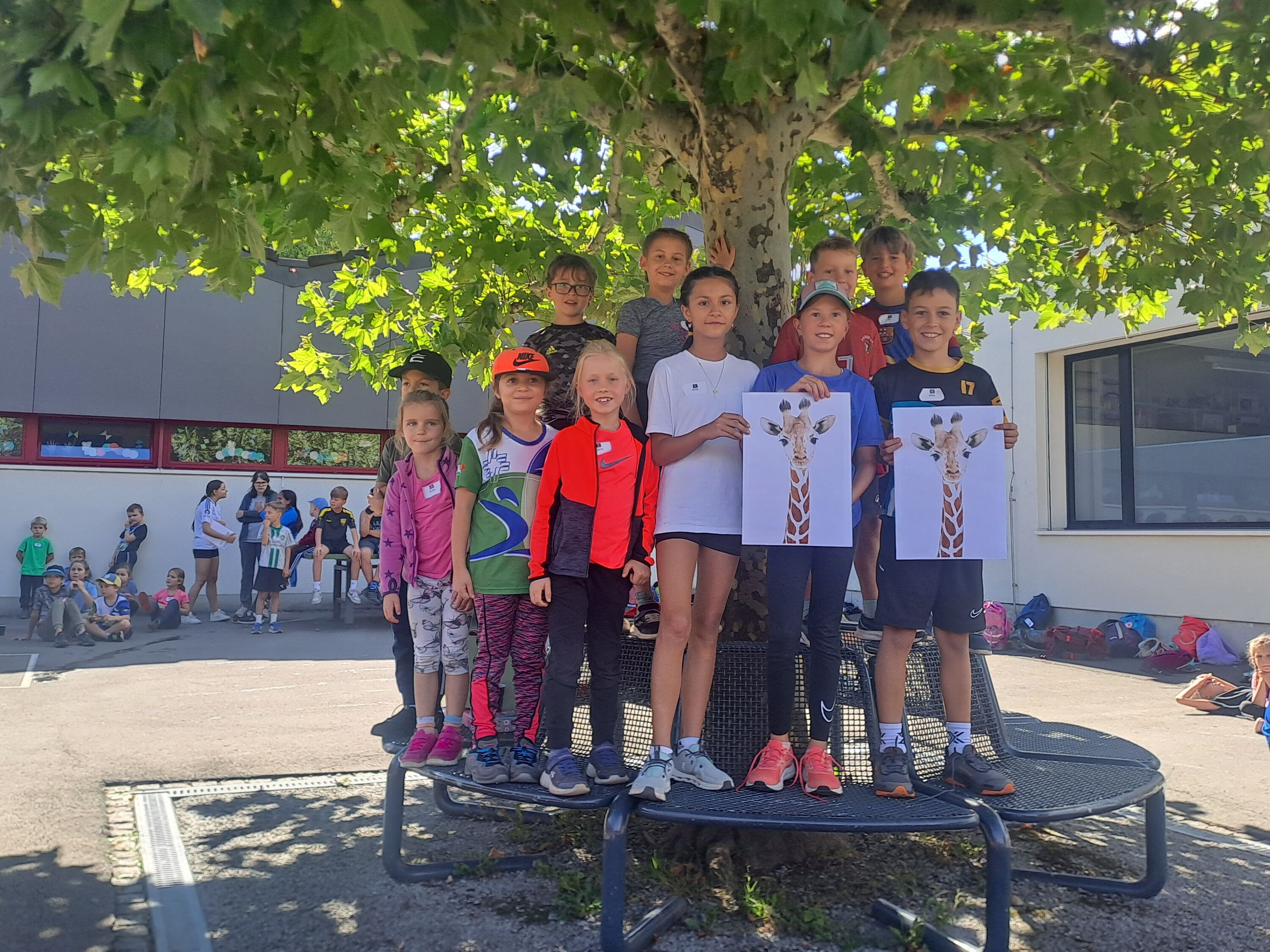 Im Roosen war einiges los! Die Schmetterlinge des Kindergartens und alle Schulkinder trafen sich auf dem Areal, um einen gemeinsamen Sportmorgen zu verbringen. Gestartet wurde mit einem bereits bekannten Tanz auf der Wiese. Anschliessend spielten die Kinder in Gruppen unterschiedliche Spiele, wobei sie sich auch aneinander messen konnten. Die Posten forderten Schnelligkeit, Zusammenarbeit und Mitarbeit jedes einzelnen Team-Mitliedes sowie viel Geschick. Die Kinder versuchten sich am Fröbelturm, an einem Hindernislauf oder warfen mit Gummistiefeln um die Wette. Ebenfalls machten sie eine Wasserstafette, bauten Kappla- und Giraffen-Türme. Besonders viel Geschick und das Quäntchen Glück benötigten sie bei der Bottle-Flip-Stafette.