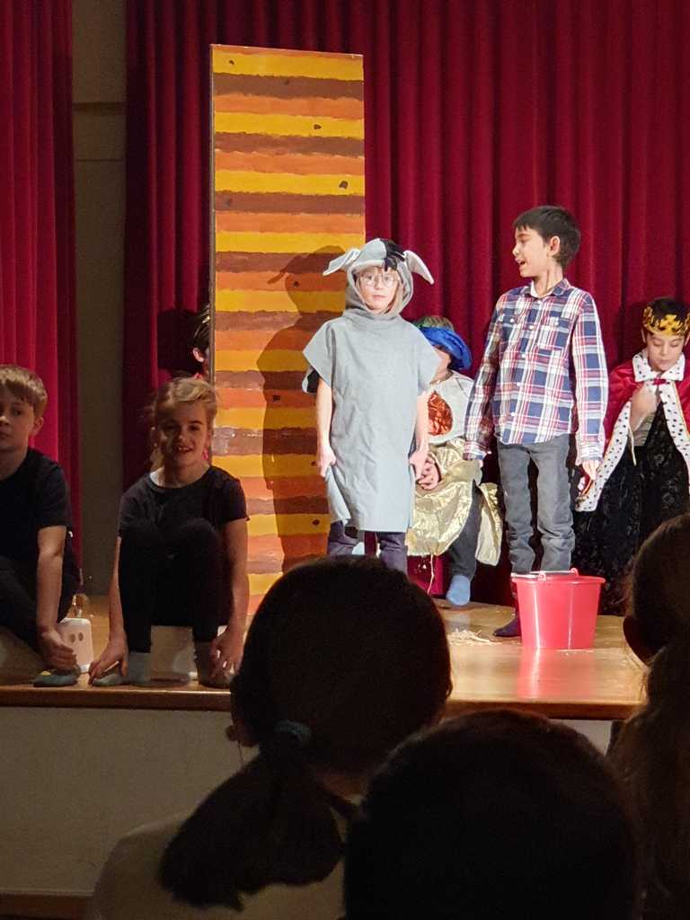 Endlich war es so weit! In der zweitletzten Schulwoche vor Weihnachten durften die 2. Klässler ihr Weihnachtstheater «So ein Kamel» vor Publikum aufführen, welches sie voller Eifer und mit viel Fleiss während vielen Stunden einstudiert hatten. Es gab gleich mehrere Aufführungen: Nicht nur den Senioren aus Lüchingen, sondern auch den Kindern vom Kindergarten bis zur 4. Klasse und den eigenen Eltern wurde es gezeigt. Bei allen Zuschauern der unterschiedlichen Gruppen kam das lustige Stück sehr gut an. Immer wieder sah man das Publikum schmunzeln oder hörte es lachen. Zuletzt gab es viele verdiente Komplimente für die talentierten Schauspieler und Schauspielerinnen.