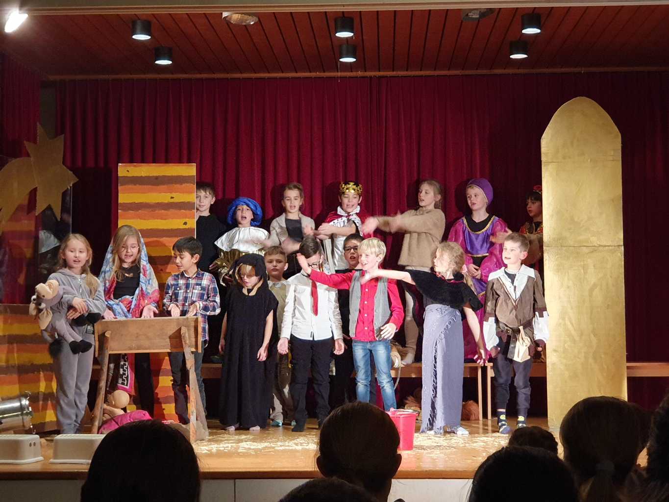 Endlich war es so weit! In der zweitletzten Schulwoche vor Weihnachten durften die 2. Klässler ihr Weihnachtstheater «So ein Kamel» vor Publikum aufführen, welches sie voller Eifer und mit viel Fleiss während vielen Stunden einstudiert hatten. Es gab gleich mehrere Aufführungen: Nicht nur den Senioren aus Lüchingen, sondern auch den Kindern vom Kindergarten bis zur 4. Klasse und den eigenen Eltern wurde es gezeigt. Bei allen Zuschauern der unterschiedlichen Gruppen kam das lustige Stück sehr gut an. Immer wieder sah man das Publikum schmunzeln oder hörte es lachen. Zuletzt gab es viele verdiente Komplimente für die talentierten Schauspieler und Schauspielerinnen.